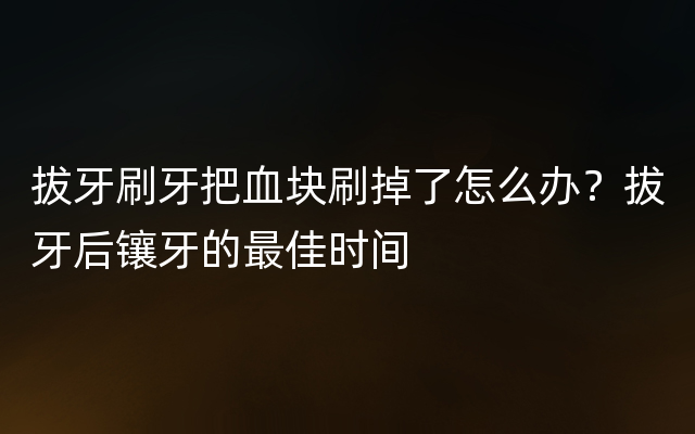 拔牙伤口中的血块是为了保护伤口,刷牙如果洗去了血块,就没有伤口的保护作用,伤口将缓慢愈合并容易被感染。可以看看拔牙的地方有没有出血,有的话可以再找个干净的棉球含住压塞半个小时,一般会形成新的血凝块。如果流血不止就需要去医院处理。如果没有出血的话,那么要注意保持创口干净,避免食物残渣进入感染创口,建议用另一侧牙齿,可以用生理盐水漱口。要注意,拔牙后的24小时内是不能漱口和刷牙的。