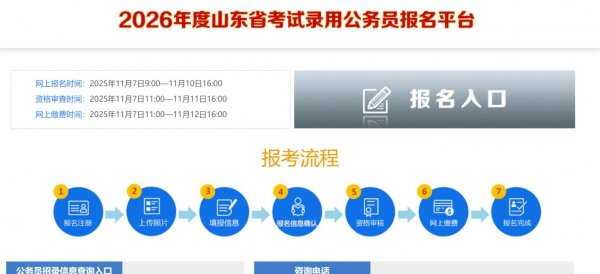 【导语】:山东省考公务员2026报名时间为2025年11月7日9︰00至11月10日16︰00,详见正文。
