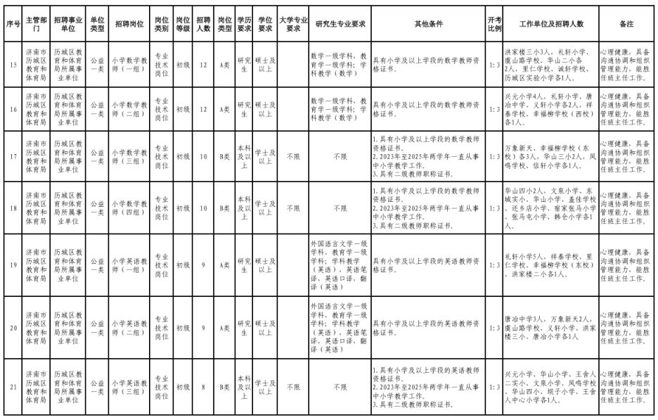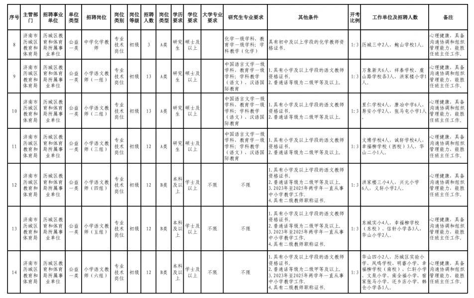 2026济南市历城区教体局所属事业单位招聘教师岗位表
