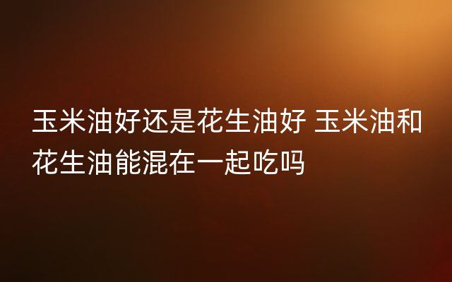 玉米油和花生油是可以一起吃的,两者一起食用并不会产生危害人体健康的物质。并且两者混合一起食用可以相互的平衡不同的不饱和脂肪酸的含量,从而为身体提供更充足、更全面的营养。并且现在市面上很多调和油就是由多种油调和而成的,这样能将多种食用油的优点进行中和。
