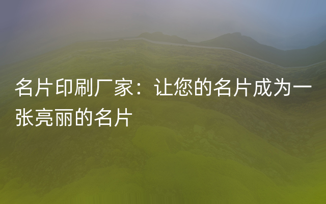名片印刷厂家:让您的名片成为一张亮丽的名片 名片印刷是现代社会中极为重要的一环,因为名片是人们社交和推销产品的必要手段,也是交流中不可或缺的一部分。名片印刷是一项专业技能,只有专业...